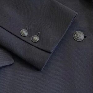 The classic single-breasted Jennah blazer from L'AGENCE. A rich navy blue ribbed suiting fabric featuring strong tailored sholders, long sleeves, embossed dome button-front closure, hip flap pockets and button cuffs. Fully lined / cotton / Dry clean.