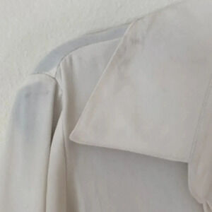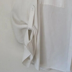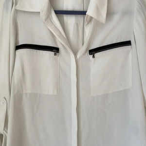 L’ Agence long sleeve blouse button down white black zip pockets needs cleaning