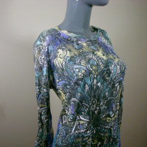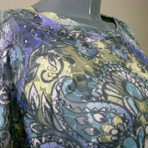 Sheer L Amore Couture Women's Clear Multicolor Elastic Size L Blouse Top Made in USA; Hand wash cold water, line dry cool iron if needed, do not bleach.