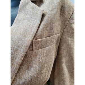 L' Atiste Beige Polyester Full Sleeve Notch Lapel Button Front Bodysuit Blazer M