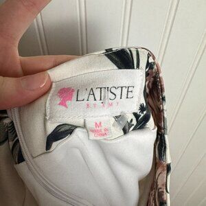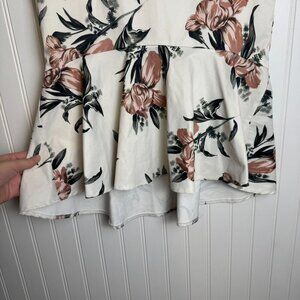 L ' Atiste By Amy white floral hi low midi skirt ruffle hem size medium H37