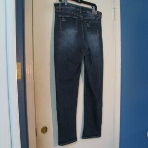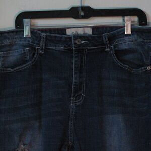 L & B jeans in plus size 18. Distressed destroyed ripped style with a skinny leg style. Traditional 5 pocket style and a zip and button front close. Super cute, made from 70% cotton, 27% polyester and 3% spandex, machine wash.