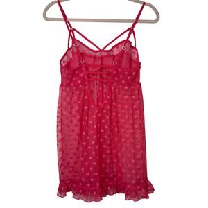 L Betsey Johnson Sheer Pink Polka Dot Mesh Slip Dress Cherry Bow Coquette Kawaii