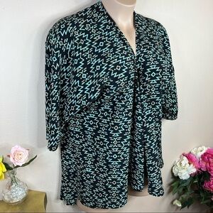 L Black & Green Geometric Boho Kimono Style Shrug Short Sleeve Large