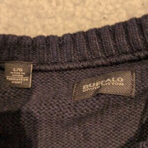 NWT: L men's buffalo long sleeve Knit sweater. It's a crew, neck style and blue in color.
