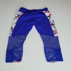 L CALIA BLUE PINK FLORAL MESH TRIM CAPRI PANTS LEGGINGS LARGE