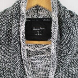 L Calvin Klein Performance Sharkbite Terry Cowl Neck Top Grey Long Sleeve