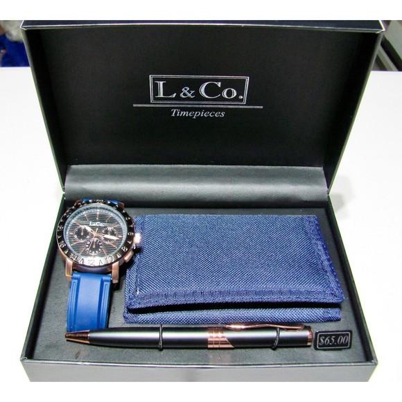 L & Co. Timepieces- Watch, Trifold Wallet, Pen- New in Box Gift Set
