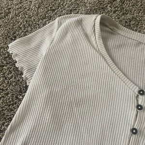 Large. Ribbed. Cream color. Buttons up the front. Has had wear but lots of life left!