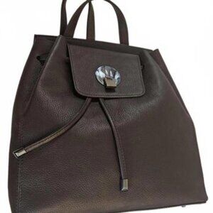 L. Credi Women's Brown Pebbled Leather Backpack with Decorative Front Flap NWOT