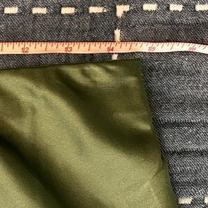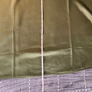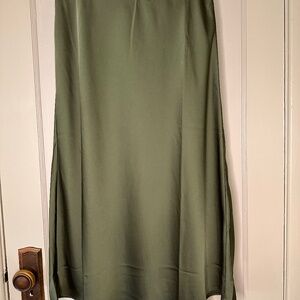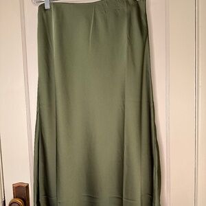 Elastic-waist Viscose charmmeuse skirt, hitting below the knee. Color is Dark Capers - a gorgeous green with yellow undertones. Size small or US 6. See pics for waist and length measurements