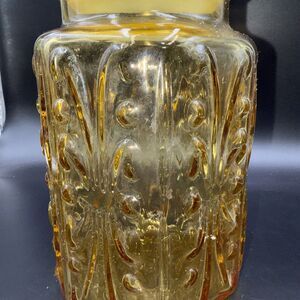 1970's L E Smith Amber Atterbury Scroll Glas Canister Cookie Jar 9"