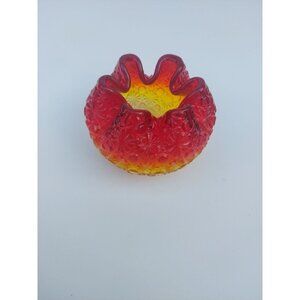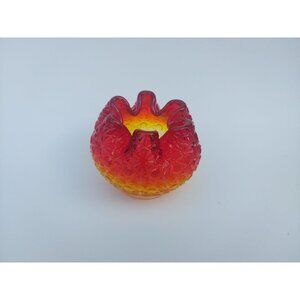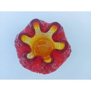L E Smith Glass Amberina Daisy & Button Crimped Rose Bowl Vase