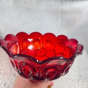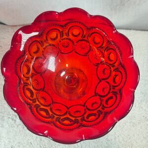 Vintage Amberina Moon & Stars Motif Pedestal Compote Bowl by L.E Smith, c. 20th Century