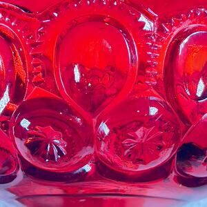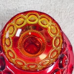 L E Smith Vintage Victorian Amberina Carnival Glass Compote Bowl Amber Red Fruit