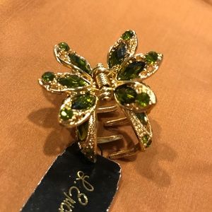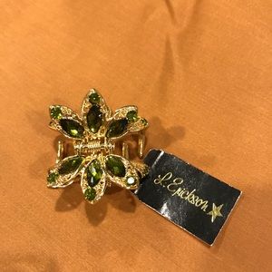 L. Erickson beautiful hair clip, green stones and gold, One size, never used/worn with tags still on