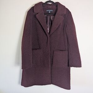 French Connection Maroon Textured Teddy Faux Fur Long Coat Size Large L