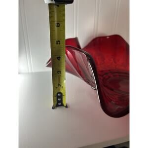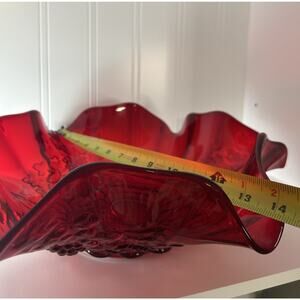 L G Wright 14” Ruby Round Serving Bowl Cadmium Paneled Grape Crimped Ruffle Glow
