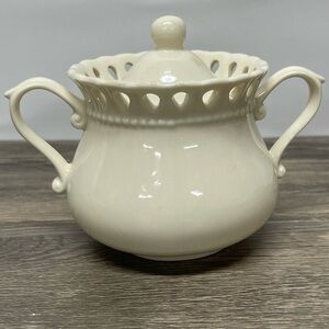 L. Godinger & Co Ivory Sugar Bowl with Lid – Pierced Rim Vintage Elegant Decor