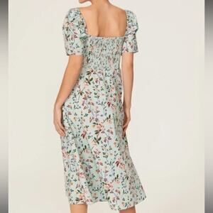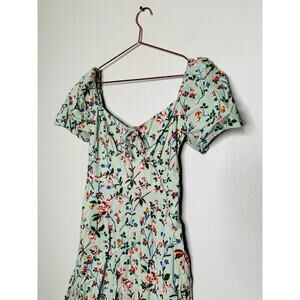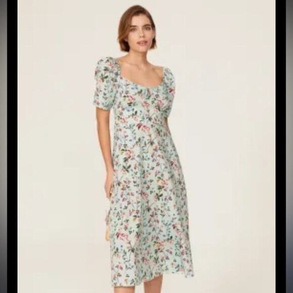 L. K. BENNETT Mint Green Floral Phelia Puff Sleeve Sweetheart Midi Dress Size 4