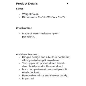 Two upper zip pockets keep travel-sized bottles and spills contained.