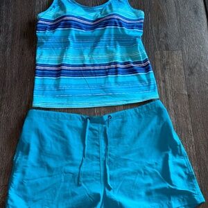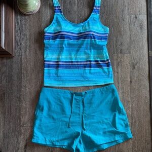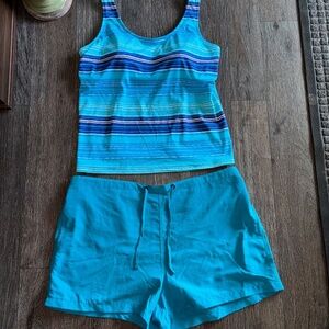 L L Bean 2 piece tankini top and swim shorts Sz 14