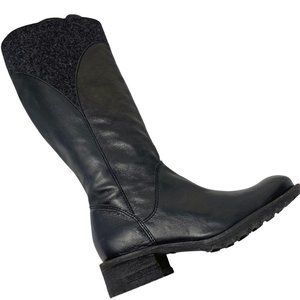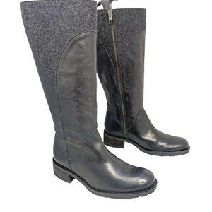 L L Bean Black Leather with Charcoal Wool Trim Tall Zip Boots