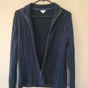 L. L. Bean Blue Cable Knit Zip Up Sweater Womens Medium 243978 Fisherman Outdoor
