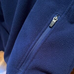 Warm fleece jacket with zip closure front pocket. Thick, warm and comfy.