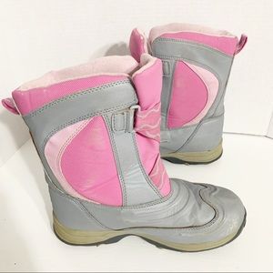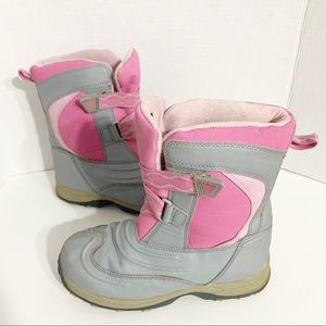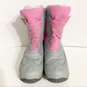 L. L. Bean Insulated Nylon and Rubber Pink Gray Winter Snow Boots Velcro Closure