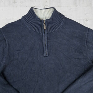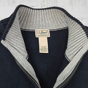 L L Bean Navy Blue Quarter Zip Heavy Knit Mock Neck Sweater Size XL Tall