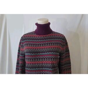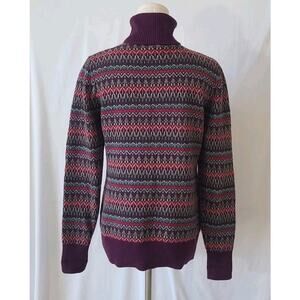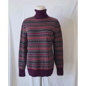 L. L. Bean Purple Fair Isle Knitted Turtleneck Sweater Small Cotton Cashmere