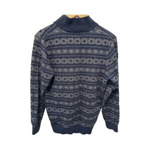 L L Bean Grampo Preppy Sweater Men's M Mock Neck Fair Isle Cashmere Blend 1/4 Zip Pull Over.