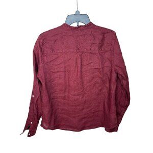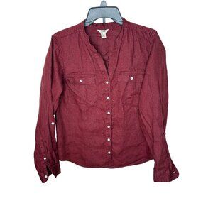 L. L. Bean Womens Burgundy Linen Long Sleeve Button-Down Shirt