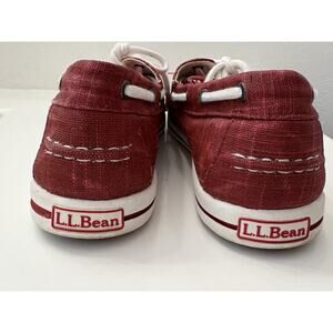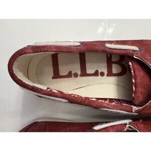 The L. L. Bean Women’s Red Canvas Lace Up Boat Shoes #503205 in size 8.5 are a classic and comfortable option for casual wear. Featuring a solid red color with embroidered logo accents, these boat shoes have a round toe shape and lace-up closure for a secure fit. Made of lightweight canvas fabric with a cushioned insole, these shoes offer comfort and style for everyday wear. Designed by L.L. Bean, known for their quality and durability, these boat shoes are a preppy and timeless addition to any woman's footwear collection. There is some color run on white laces (see photos) otherwise excellent condition.