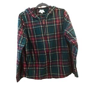 L L Bean Women’s Relaxed Fit Scotch Plaid Sz M Full Zip Flannel Hoodie Gorpcore