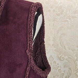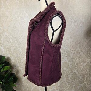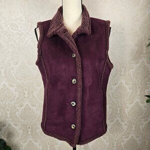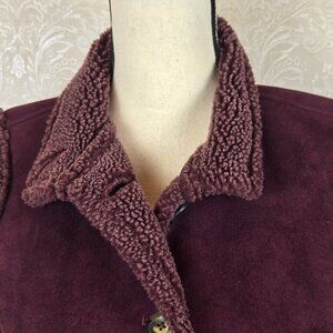 L L Bean Women's Size Small Burgundy Faux Suede Vest Sherpa Lined Button Down