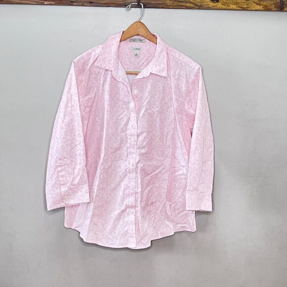 L. L. Bean Wrinkle Resist Pink Paisley Print Button Up Shirt- Size L