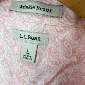 L. L. Bean Wrinkle Resist Pink Paisley Print Button Up Shirt- Size L. In very good pre-owned condition.