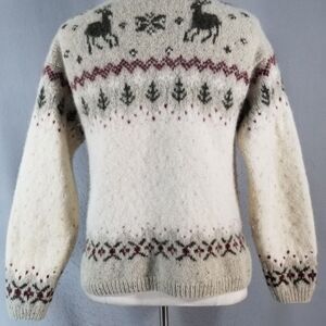 L L Bean sweater mens large White Gray Brown Wool Silk Crew Neck Winter FLAWED