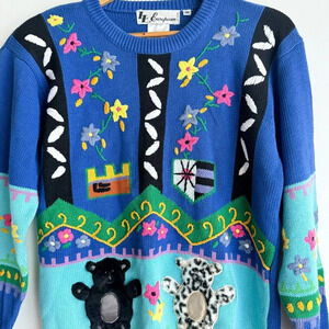 L L European Colourful Novelty Bear Print 3D Fun Unique Pullover L