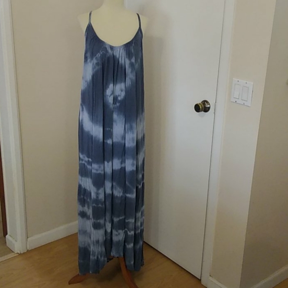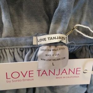 This is a brand new LOVE TANJANE dress. A little longer in the back than the front. Soft and stretchy material. Bust is 15.75 inches across, front length is 48.5 inches, back length is 54 inches. Made in southern california and hand dyed. Two tones of gray in a tie dye pattern. Price is firm. Thanks for looking.