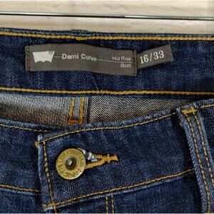 L Levi's Women Demi Curve Dark Blue Wash Mid Rise Boot Bootcut Denim Jeans 16 33 details: