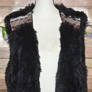 L Love Boutique Black Furry Shaggy Long Open Front Sweater Vest Womens Size 2XL