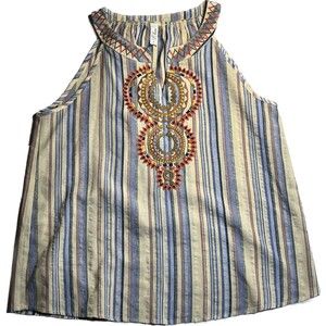 L Love Boutique Striped Colorful Embroidered Sleeveless Halter Tank Womans Sz M