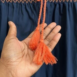 L Love Floral EMBROIDERED TASSEL RUFFLE DRESS Size Medium Navy Blue Orange