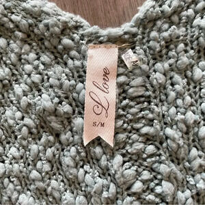 L Love Open Long Sleeve Popcorn Sweater Cardigan Pale Green Women’s Small