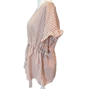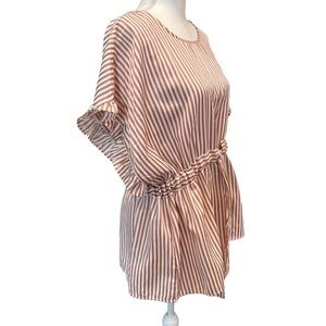L Love Tie Waist Flutter Sleeve Peplum Blouse Top Pink & White Stripes Size L