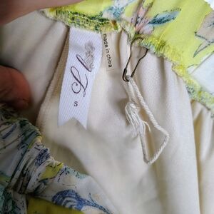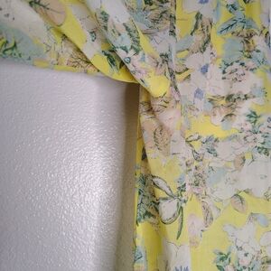 L Love Women's Yellow Floral Print Elastic Waist Wide Leg Flare Mesh Pants Sz S