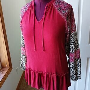 L Love mixed media lightweight peplum tunic Small oversized gauzy chiffon
